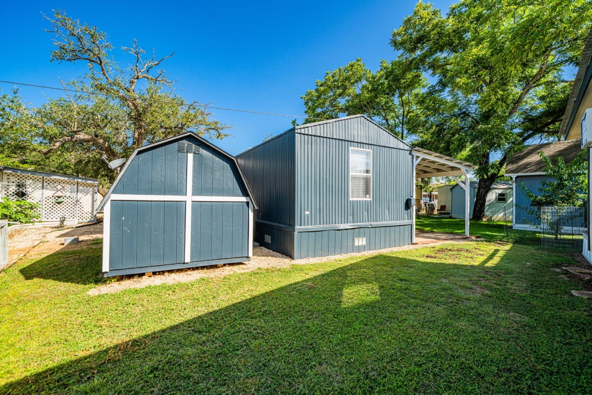 Nestled near the banks of the Guadalupe River enjoy the tree lined streets and quiet tranquility of Riverfront Village . This over 55 community offers what everyone comes to the hill country for: community, quality of life and serene beauty. This lovely 3/2 Schult home exudes warmth and charm. So many wonderful upgrades starting right at the front drive enjoy the lush lawn and newly screened porch; this spacious area allows light and air but no bugs! There is also a pony wall below the screen for added privacy. The interior of the home is freshly painted throughout with all new ceiling fans. The ample living room has plenty of space for gathering. The sunny bay window is the perfect spot for dining and bringing the outside in. Step into the cheerful kitchen featuring a new a new backsplash and love the counterspace and storage. This open concept design with split bedroom floorplan is neat as a pin and move in ready. More recent improvements include new a/c system, gutter shields, doggie dog and new side gate. Riverfront is one of the few adult communities that allows fencing! This property has a nice, fenced yard a brand-new storage building, and additional storage room/workshop located in the carport area. There is also a nice private patio space in the rear of the home. Put this on your shortlist of properties to see great quality, move in ready. Riverfront is an adult land lease community your monthly park rent of $610.00 includes: water, sewer, trash, use of the clubhouse, and private access to the Guadalupe River